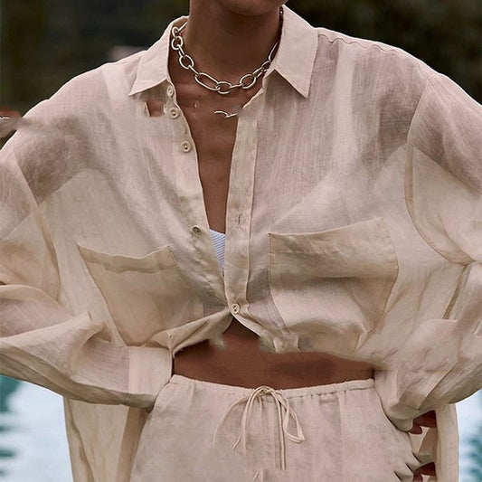Women's Loose Fitting Shirt And Pants Two-piece Set