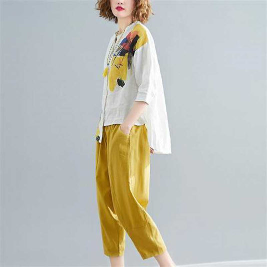 Women's Nine-quarter Sleeve Shirt Loose Two-piece Pants