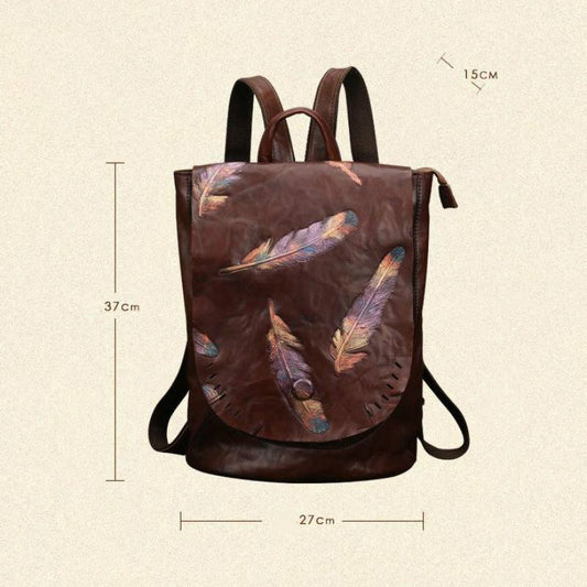 Retro Embossed Women's Backpacks In Cowhide