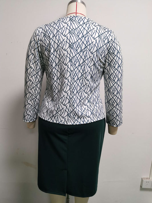 Two Piece Plus Size Womens Printed Coat And Beaded Dress